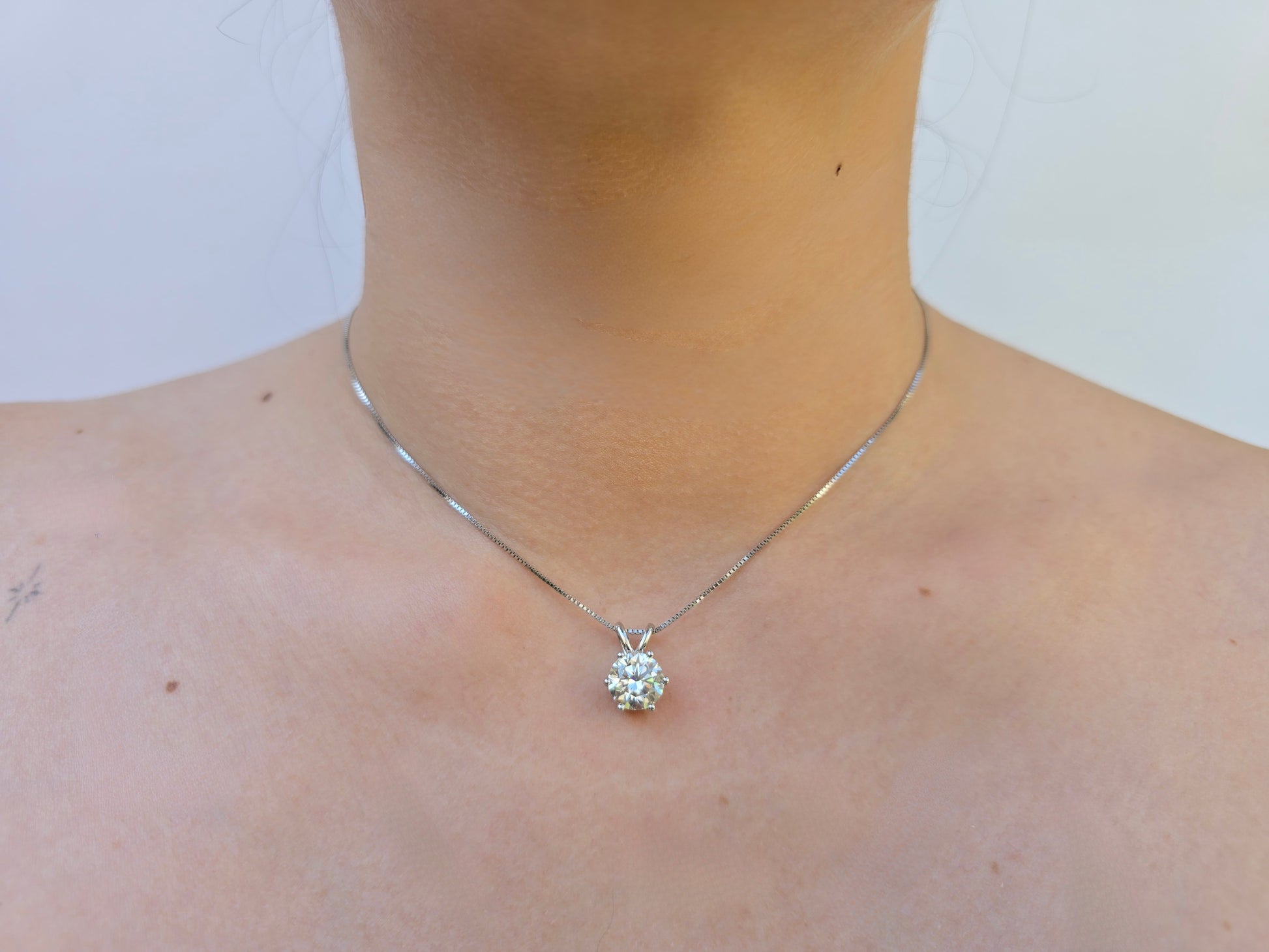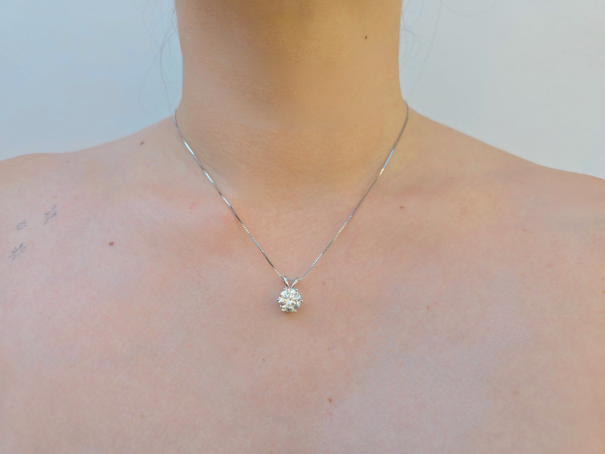 Heartlight es una joya esencial que brilla desde el centro. Su diseño minimalista con una moissanita suspendida cerca del corazón celebra la luz interior con elegancia serena. Ideal para llevar todos los días, en cualquier momento. Gema de 3 ct