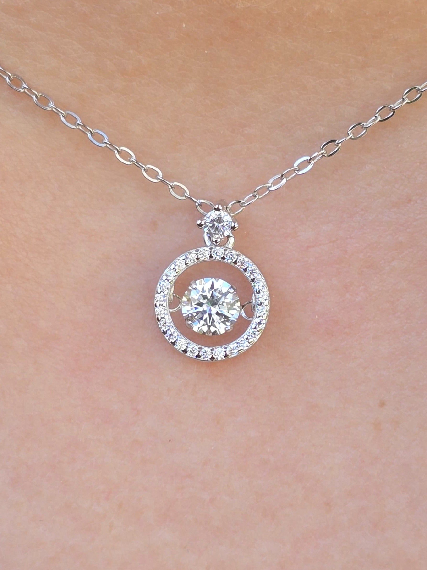 Orbit es una joya con centro brillante y energía circular que baila con el movimiento natural del dia a dia. Su diseño representa equilibrio, protección y expansión. La moissanita central flota dentro de un halo de luz que gira sutilmente, como una órbita personal hecha para brillar contigo.