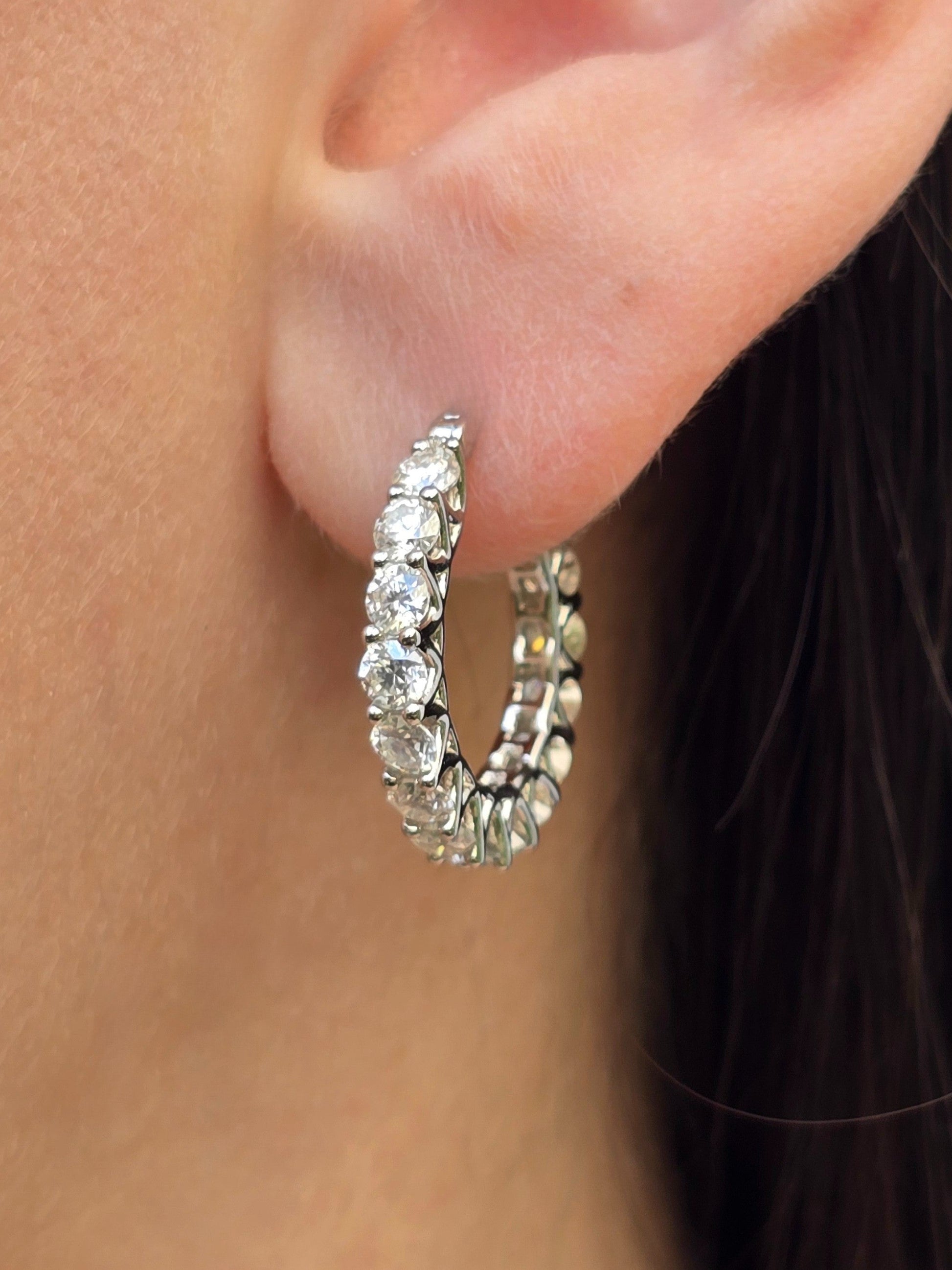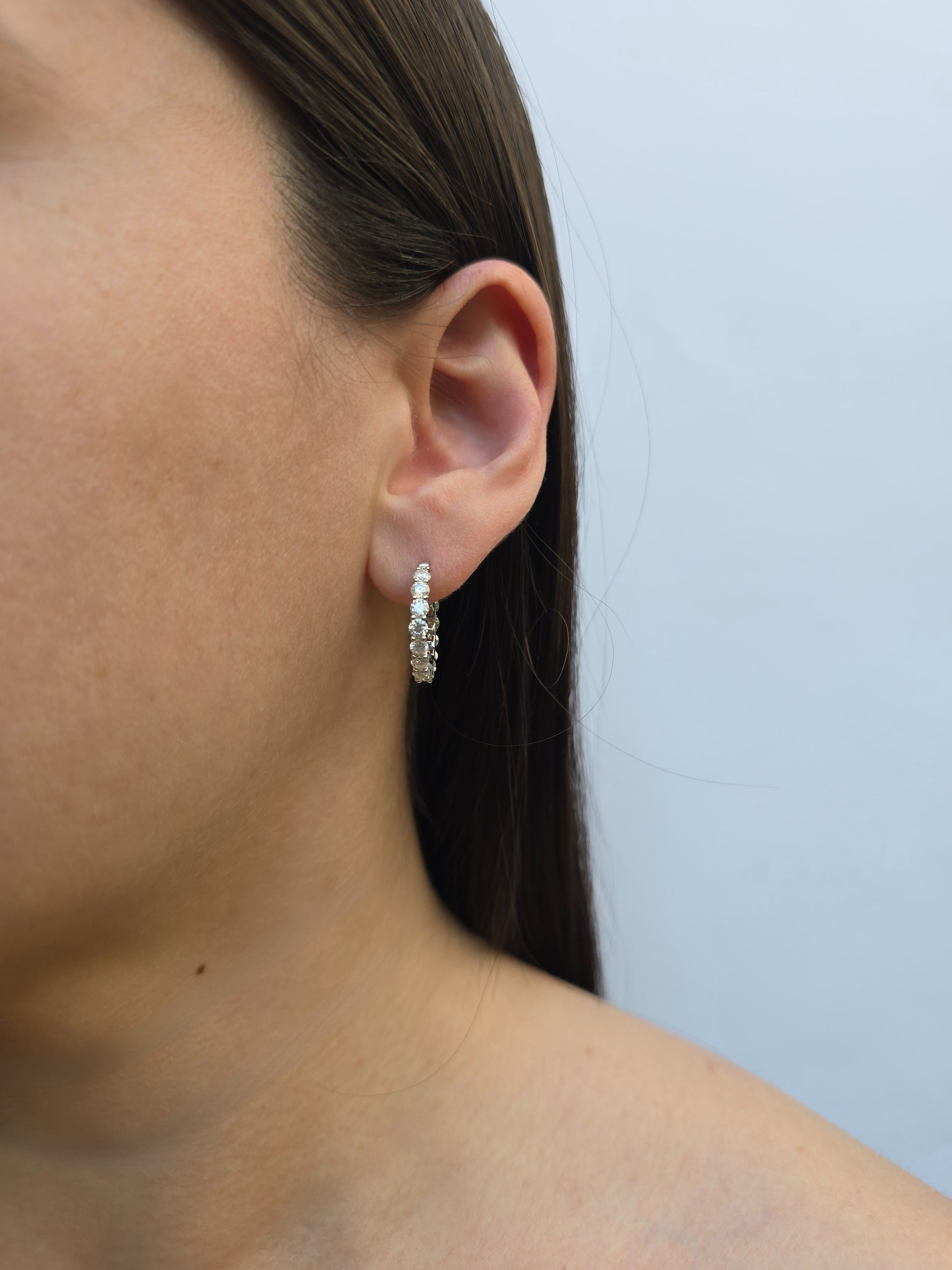 Sparkling Loop es un aro de luz en movimiento. Su forma circular, completamente rodeada de moissanitas, crea un efecto de brillo constante y elegante. Una pieza diseñada para brillar con cada paso y elevar cualquier estilo con naturalidad.
