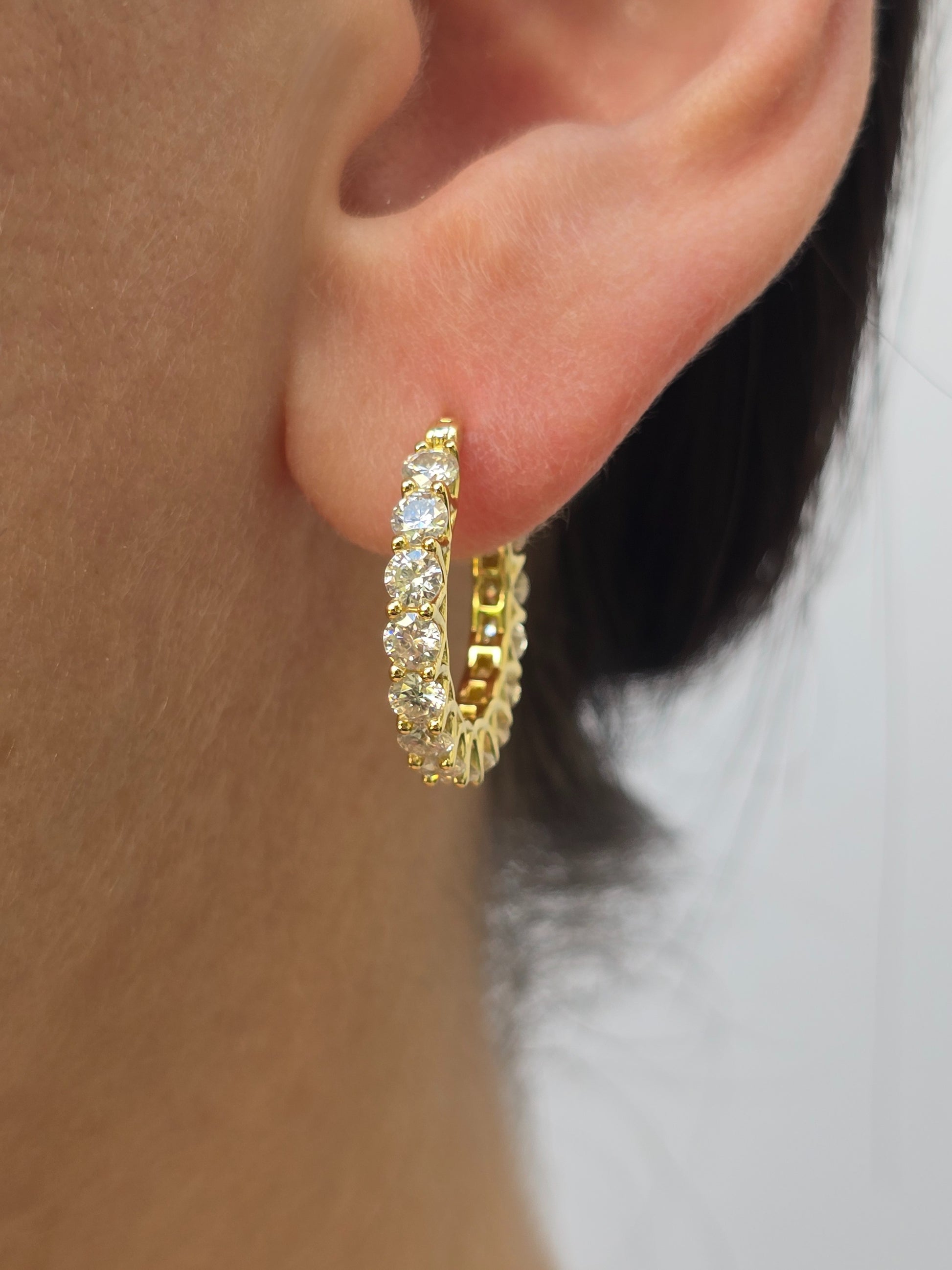 Sparkling Loop es un aro de luz en movimiento. Su forma circular, completamente rodeada de moissanitas, crea un efecto de brillo constante y elegante. Una pieza diseñada para brillar con cada paso y elevar cualquier estilo con naturalidad. Pieza de Plata con baño de Oro